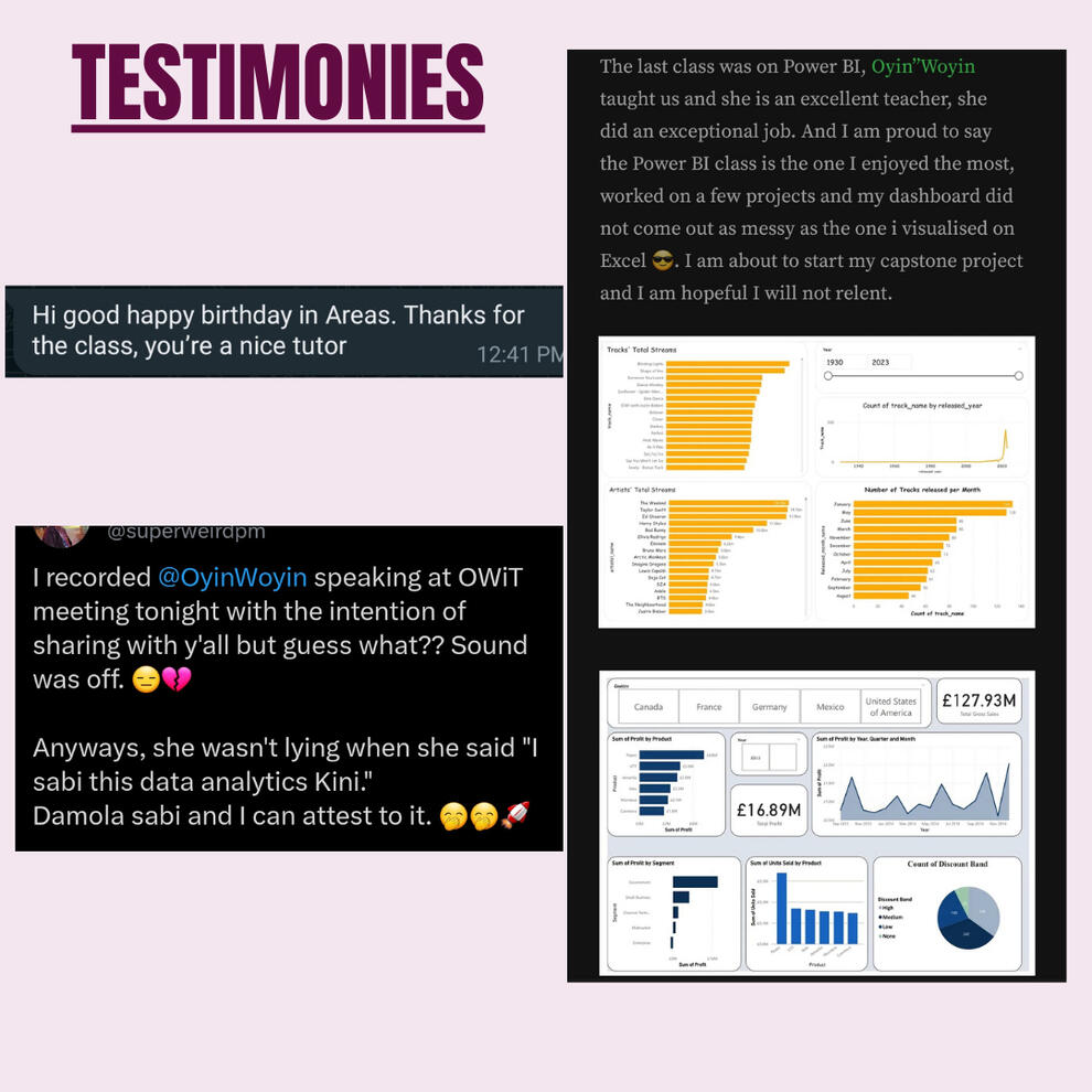 I have worked and volunteered with different organizations to make their processes more streamlined. I have also taught students who testify to my excellent teaching.These are some of the testimonies;